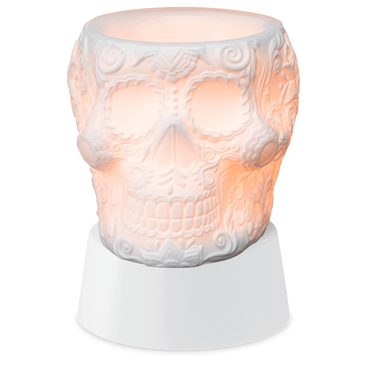 Scent your smaller spaces with the Calaverita Mini Scentsy Warmer with Tabletop Base this Halloween – it’s spectacularly spooky! With its skull-shaped design and intricate detailing, inspired by the Calavera Sugar Skulls of Mexico, this limited edition wax warmer will make an eye-catching addition to any room.