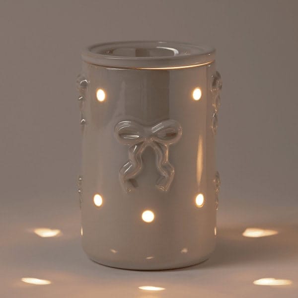With a soft cream finish, raised bow detailing and tiny pinholes that create a warm, glowing light, the Dreamer's Bow Scentsy Warmer works perfectly in bedrooms, living rooms or hallways — anywhere you want things to feel a little softer and more inviting. Voted January’s Scentsy Warmer of the Quarter, this stunning piece will make a wonderful addition to any home or office.