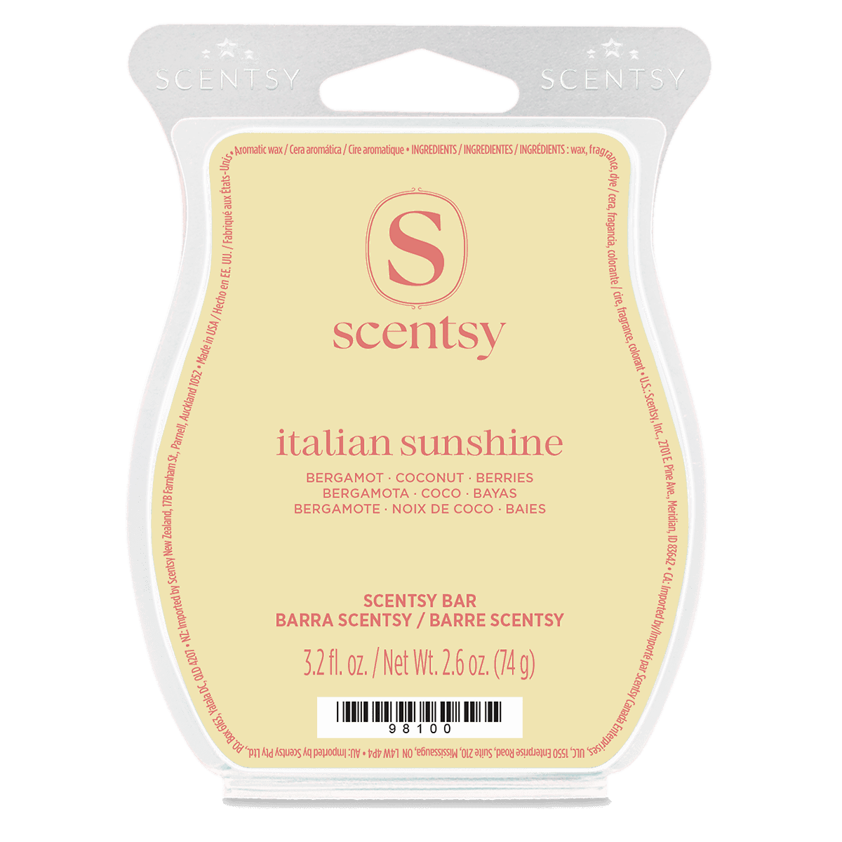 Fill your home with the warmth of the Italian countryside with the irresistible Italian Sunshine Scentsy Bar. Cheerful notes of Italian bergamot and sun-kissed coconut mingle with sweet berries and warm amber, creating a bright, uplifting aroma that radiates pure sunshine.