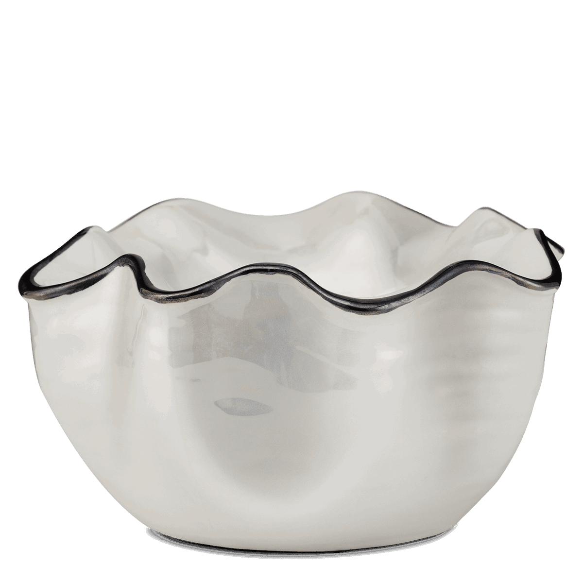 Made from ceramic with a softly rippled, bowl-like shape and a hand-painted dark-edged finish, this warmer feels contemporary without being too modern.