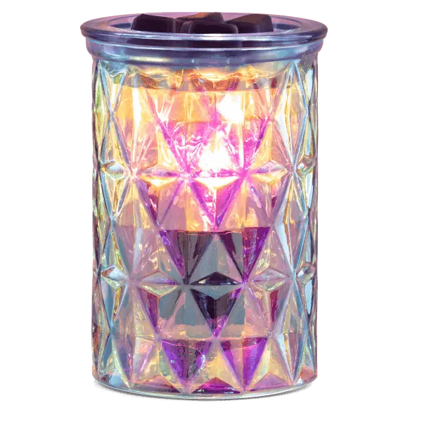 Introducing the Warmer of the Quarter, the Prismatic Scentsy Warmer - a dazzling masterpiece that fuses geometric design with the power of fragrance. Stunningly handcrafted in iridescent glass, it's exquisite prismatic glass patina creates a stunning display of vibrant colours that cast a kaleidoscope of hues that dance and shimmer. A true work of art, this Scentsy warmer not only fills your space with delightful fragrance but also serves as a striking décor piece for any space.