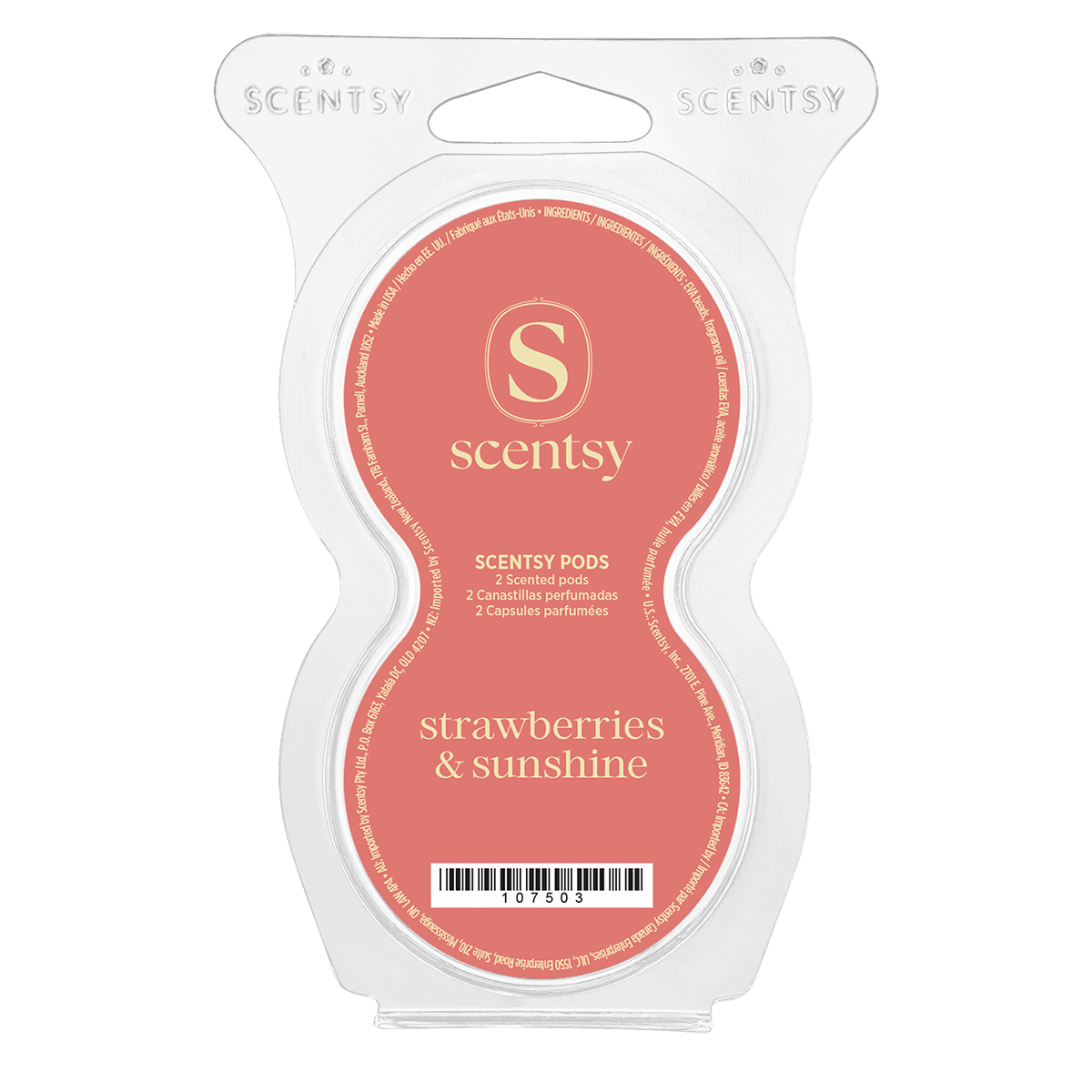 Think bright mornings and windows thrown open — Strawberries & Sunshine Scentsy Pods capture that easy, happy feeling in scent form. Sweet, juicy strawberries meet the zing of tart yuzu, rounded off with the soft warmth of sun-drenched wicker baskets for a fragrance that feels cheerful, light and full of energy.