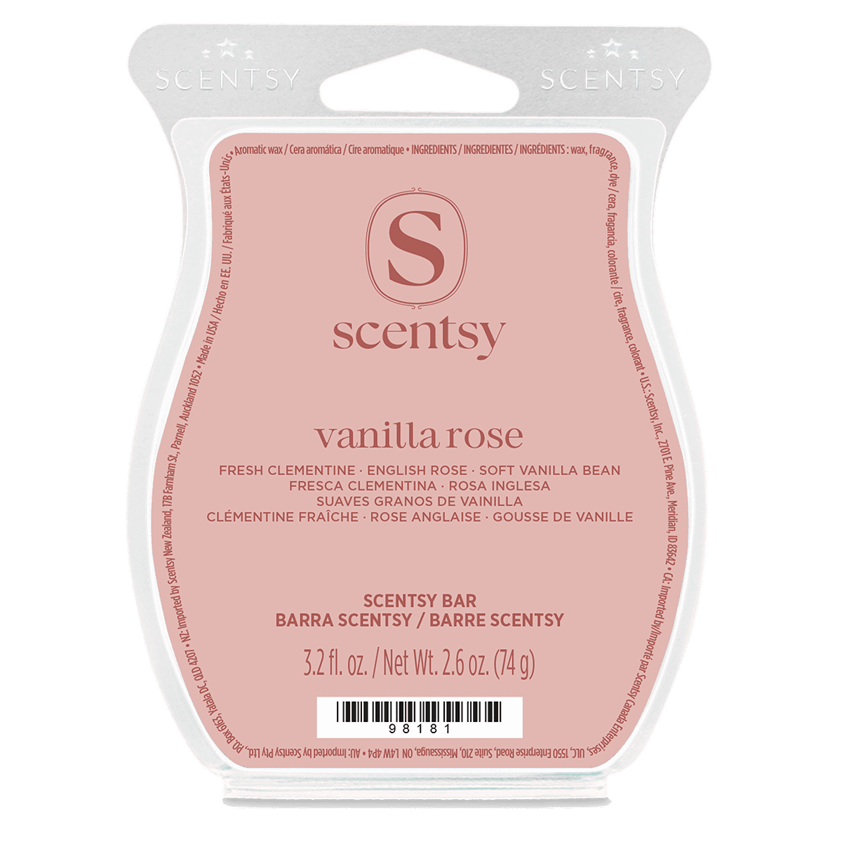The Vanilla Rose Scentsy Bar blends bright clementine, sweet vanilla bean and soft English rose for a timeless, elegant fragrance that never goes out of style.